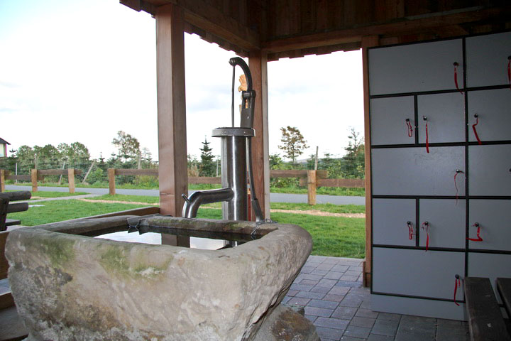 Direkt am Wassertretbecken befinden sich Spinde, in denen Sie Ihre Schuhe und Taschen einschließen können. Danach starten Sie den Rundgang mit einem dreiminütigen Wasser treten im Kneipp-Wassertretbecken.