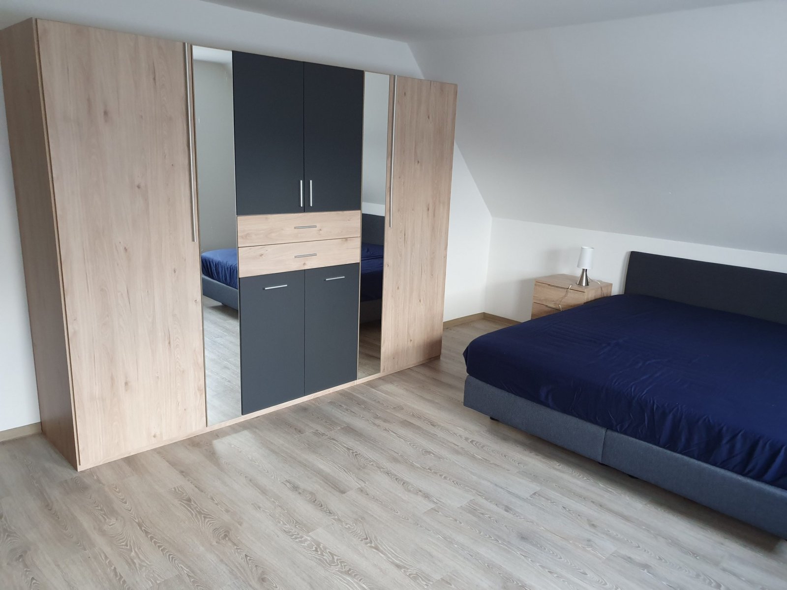 - Schlafzimmer für zwei Personen mit Boxspringbett (180 cm x 2oo cm) und Flachbildfernseher