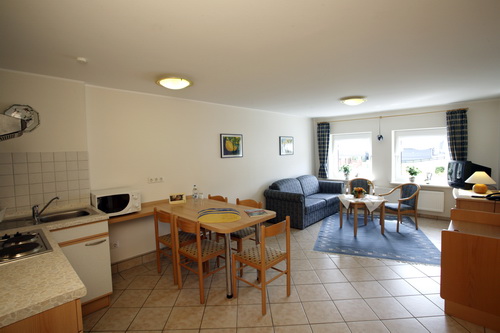 2 x Typ C Ferienwohnung (60m²) für 2 – 6 Personen 1 Wohnraum mit Schlafcouch (eine Wohnung ist eine Allergikerwohnung mit Balkon) |